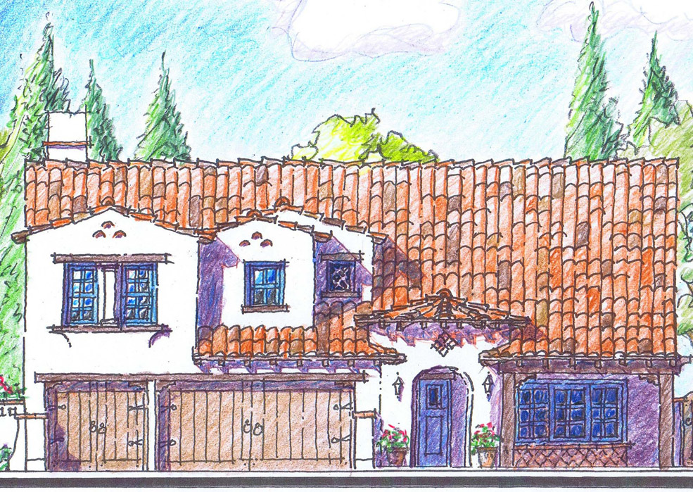 Hand Drawn Elevation Study for Residential Remodel & Addition in Fountain Valley, California. Project Under Construction.