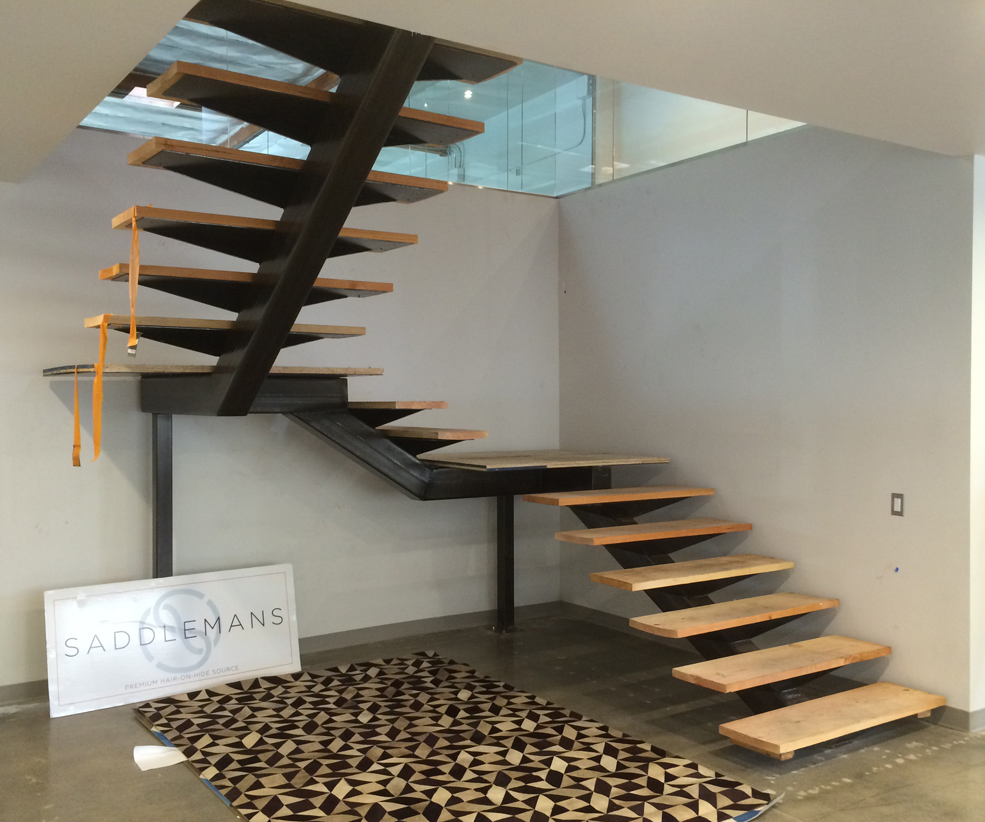 Corporate Headquarters Office and Showroom Tenant Improvements in Costa Mesa, California. Open Stairway.
