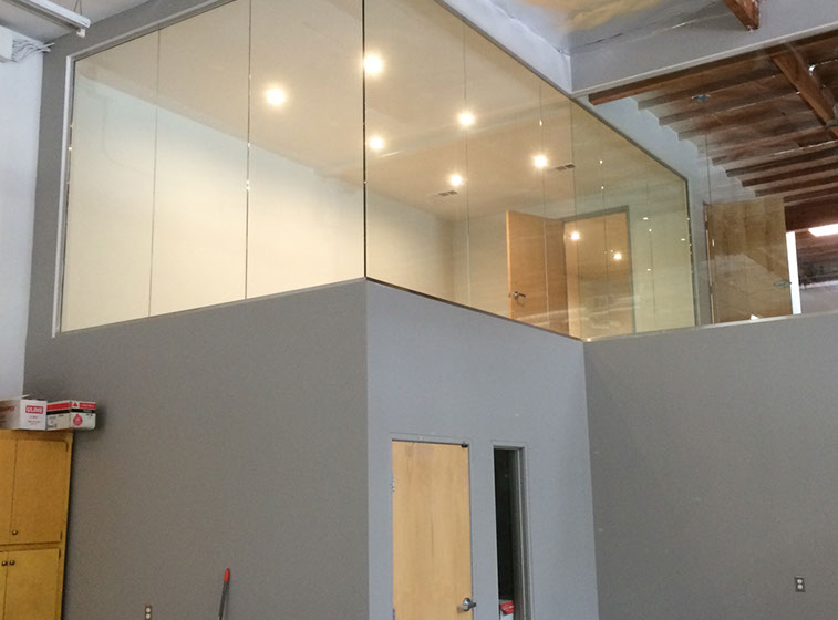 Corporate Headquarters Office and Showroom Tenant Improvements in Costa Mesa, California. Full Glass floor to ceiling Office.
